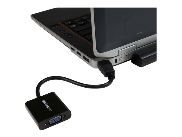 - Det behövs ingen extern strömadapter till HDMI till VGA-adaptern vilket säkerställer maximal bärbarhet