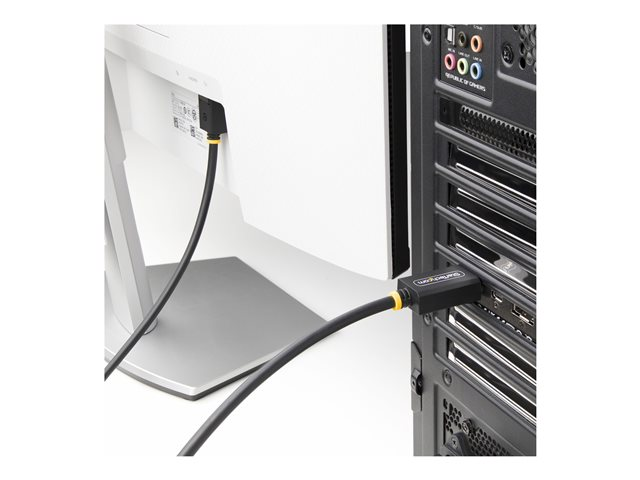 StarTech.com 1 m DisplayPort 2.1-kabel är en VESA-certifierad, högpresterande kabel som är utformad för att uppfylla behoven hos krävande multimediaproffs och spelentusiaster. Med stöd för upplösningar upp till 8K60Hz och 4K144Hz levererar den här kabeln kristallklara, högupplösta bilder och stöder HDR för levande färger och djupare kontraster. Spelare kommer att dra nytta av FreeSync- och G-Sync-kompatibilitet, vilket säkerställer en smidig, tårfri spelupplevelse. Kabeln är konstruerad för hållbarhet och har en robust design med en livslängd på 600 böjningar, 10 000 infogningar och dragavlastning. Den erbjuder också en dataöverföringshastighet på upp till 40 Gbps, vilket gör den idealisk för video- och ljudöverföring med hög bandbredd. Dessutom är kabeln utrustad med EMI-skydd och spärrade kontakter, vilket garanterar en stabil och säker anslutning och minimerar potentiella signalstörningar. Oavsett om du installerar en professionell videoredigeringssvit eller en avancerad spelrigg ger StarTech.com DisplayPort 2.1-kabeln den tillförlitlighet och prestanda du behöver.