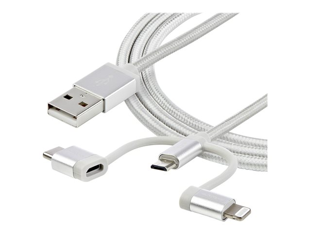 USB till Micro-USB eller USB-C eller Lightning för iPhone/ iPad/iPod/Android - Apple MFi-certifierad - 3 i 1 USB-laddare - Vävd - USB-kabel - USB (hane) till mikro-USB typ B, Lightning, USB-C (hane) - 1 m - silver