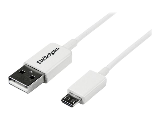 - Information Charge or sync your Micro USB devices over longer distances, with this high-quality white USB 2.0 replacement cable. The USBPAUB2MW 2m White USB to Micro USB Cable features thin USB connector moldings and provides a simpler connection between your Micro USB 2.0 mobile devices (smartphones, digital cameras, Tablet PC devices, portable hard drives, etc.) and your PC or Mac computer, for everyday tasks such as charging, data synchronization or file transfers.