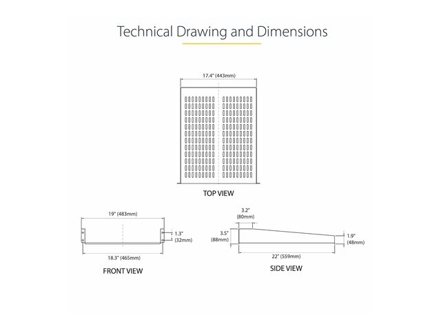 StarTech.com 1U Server Rack Shelf, 2U 22in Universal Fixed Vented Network Rack Shelf/Cantilever Tray for 19" AV/Data/Network Equipment Enclosure w/Cage Nuts & Screws, 50lbs Weight Cap.