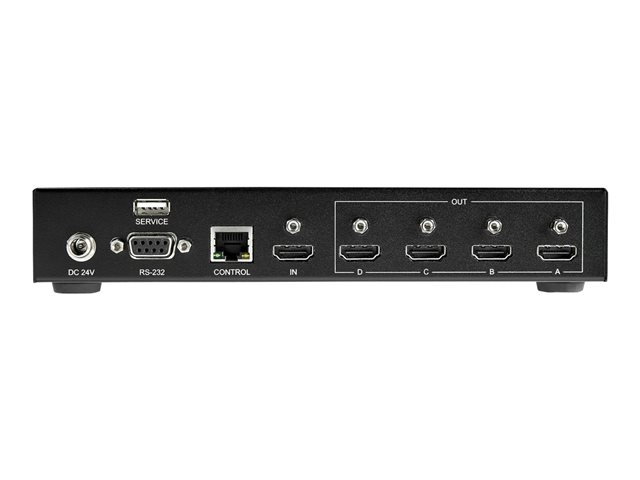 - 1 till 4 video-splitterfunktion gör det möjligt att distribuera samma signal till fyra olika skärmar