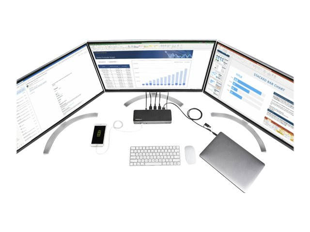 - FLEXIBEL UPPSÄTTNING AV FLERA BILDSKÄRMAR: USB 3.1 Gen. 2, 10 Gbps, dockningsstation (Type-C/A) med stöd för två och tre bildskärmar (upp till 3x 4K 60 Hz) med valfri kombination av 3x DisplayPort 1.4 och 3x HDMI 2.0 med HDR-portar